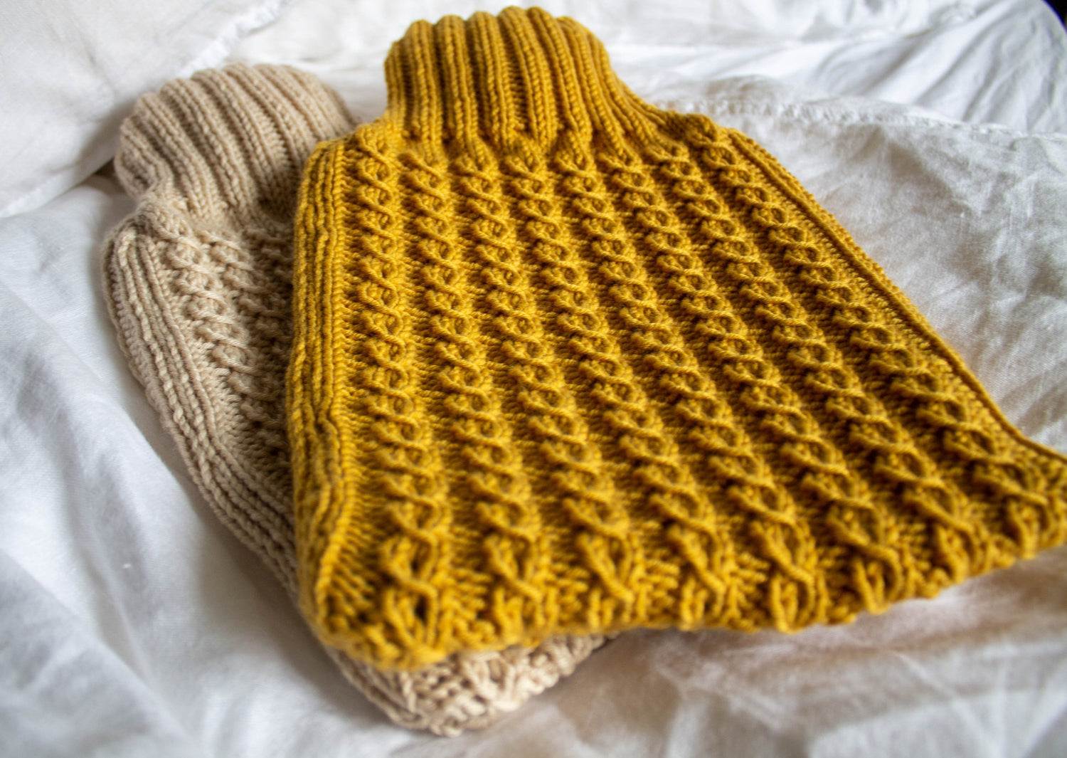 Our hot water bottle is hand knit in a cashmere and wool blend yarn - soft and sumptuous - whilst the classic cable stitch creates subtle texture.