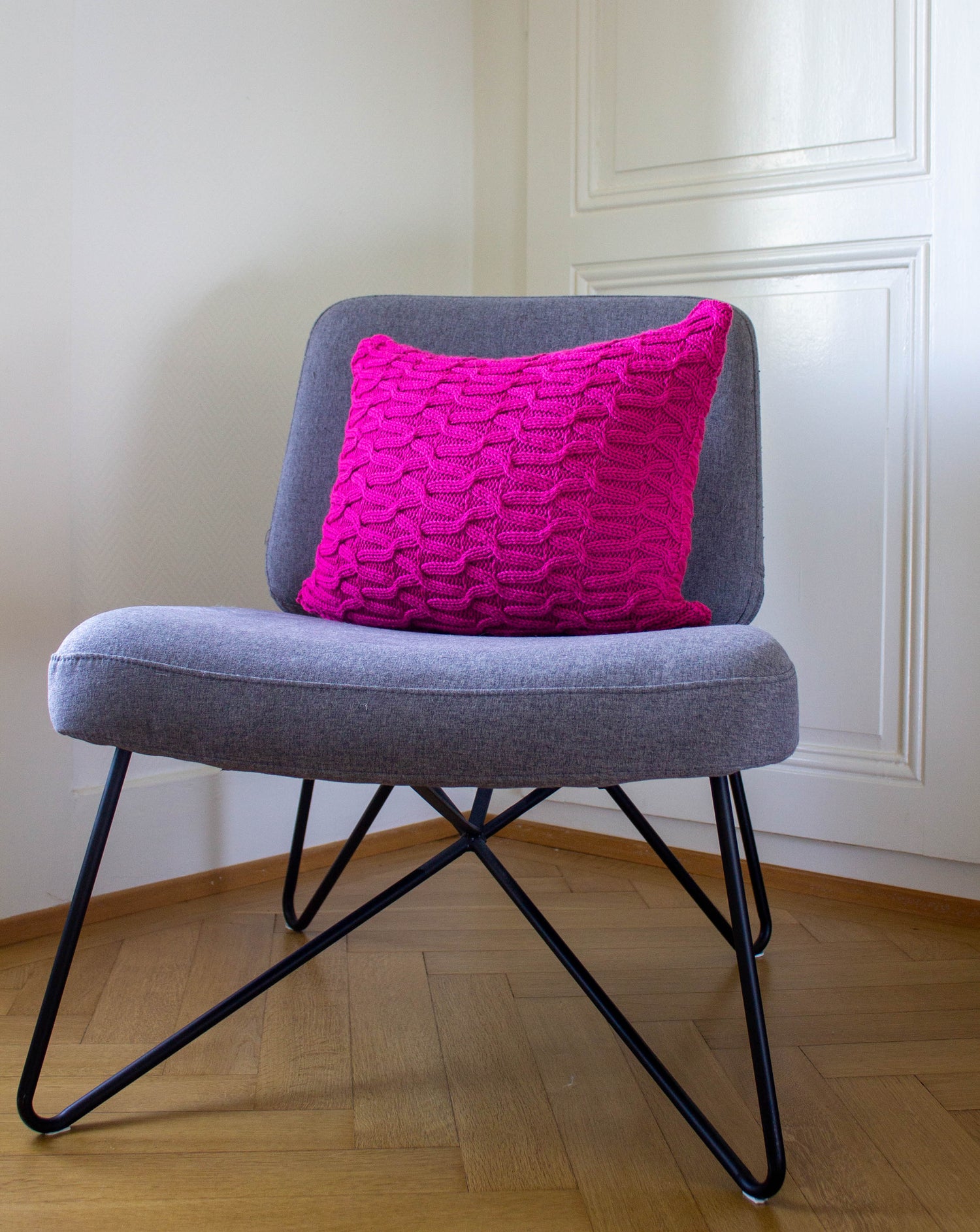 Contemporary Cable Stitch Cushion Hand Knit in Fuchsia