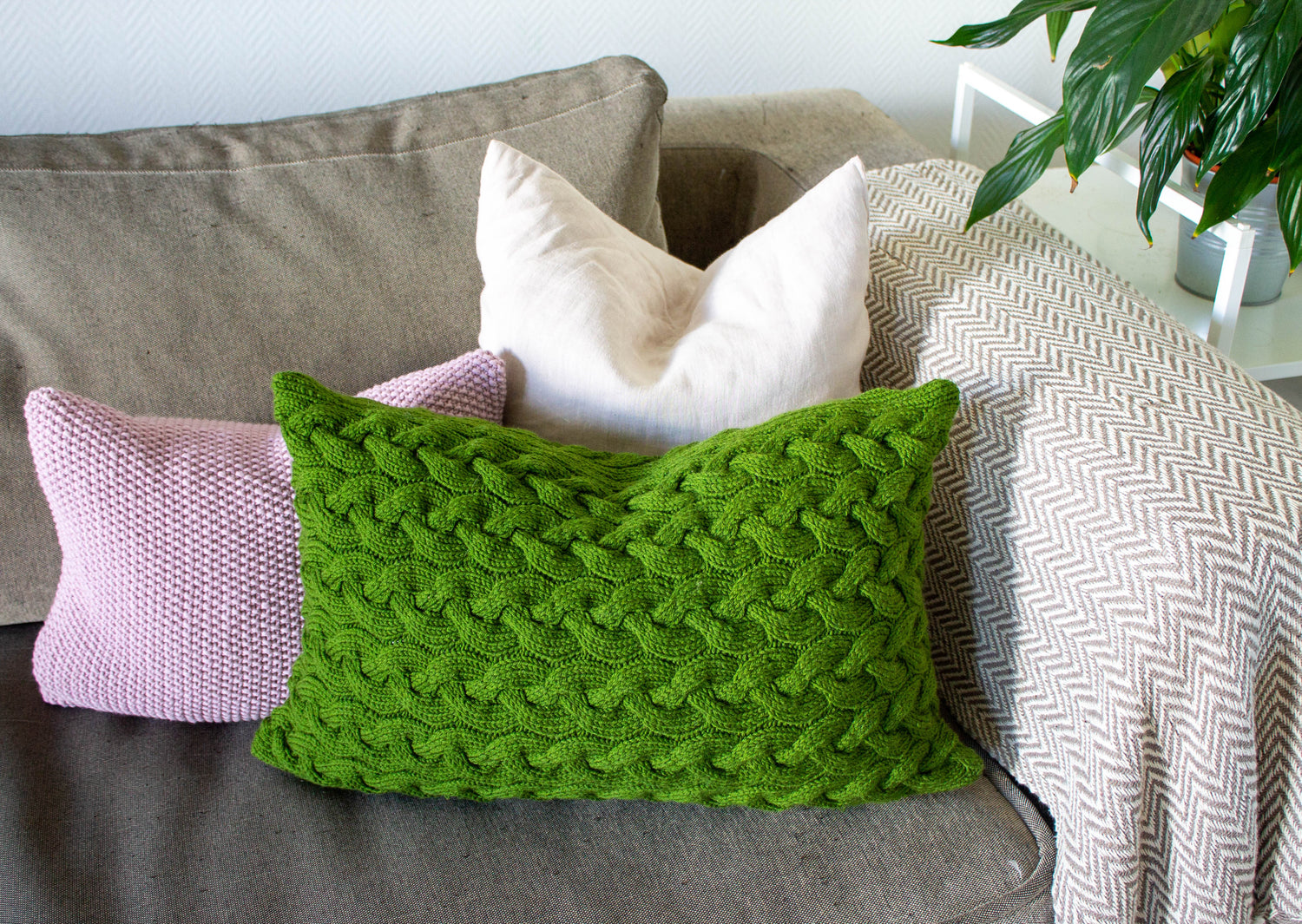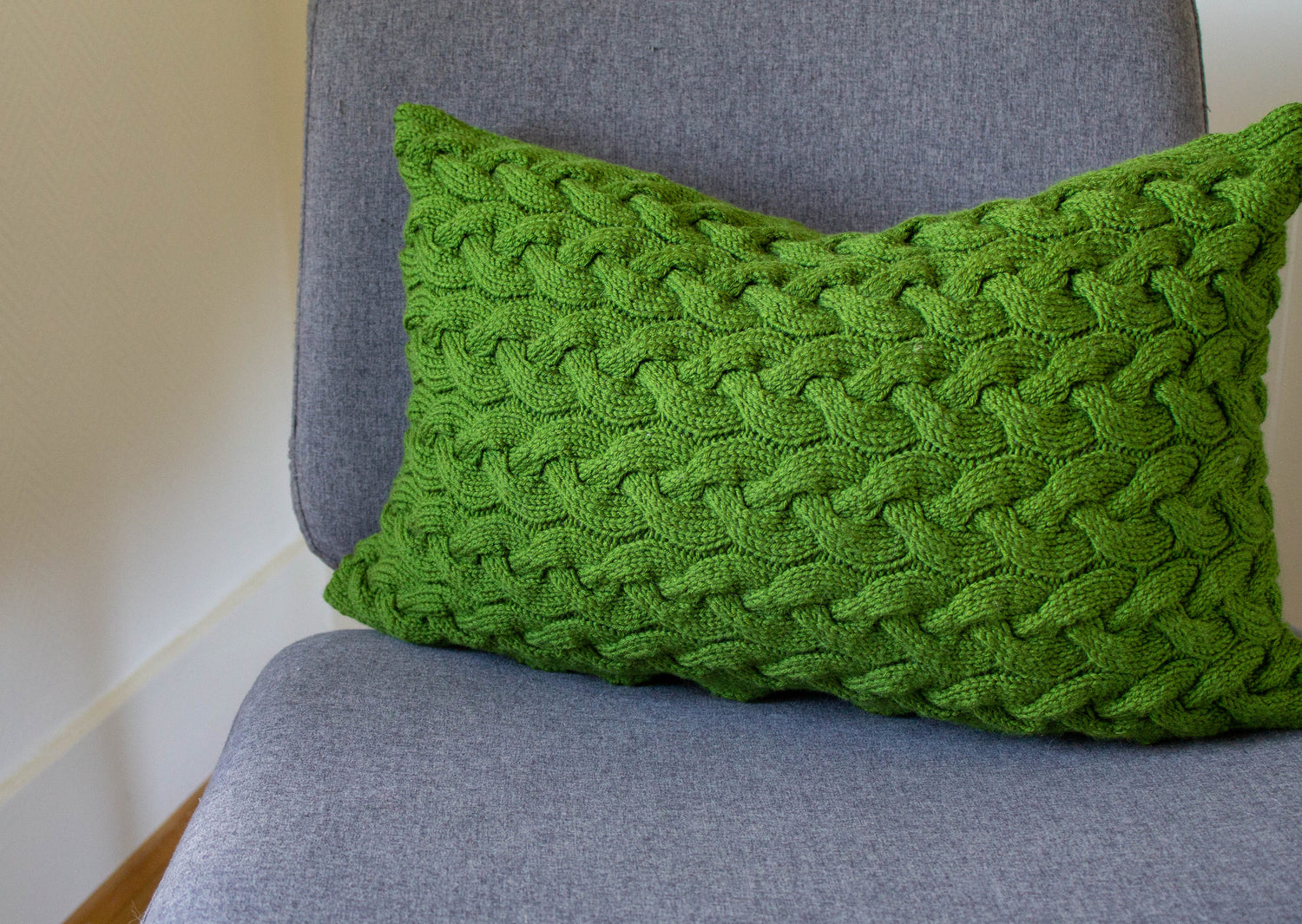 Contemporary Cable Stitch Cushion Hand Knit in Emerald