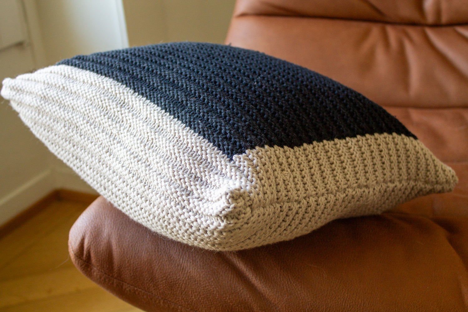 Hand Knit Colour Block Cushion Cover (Ecru and Black)
