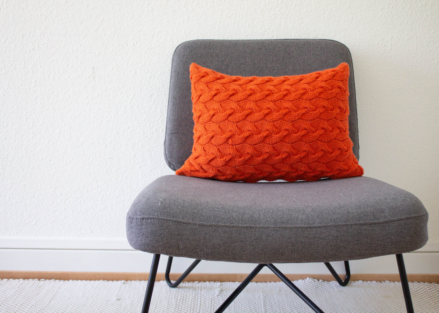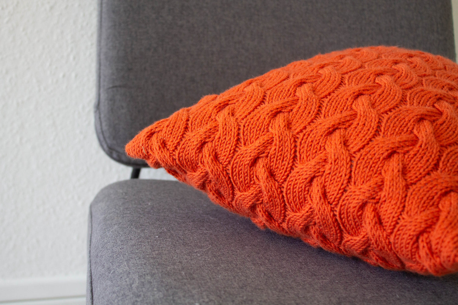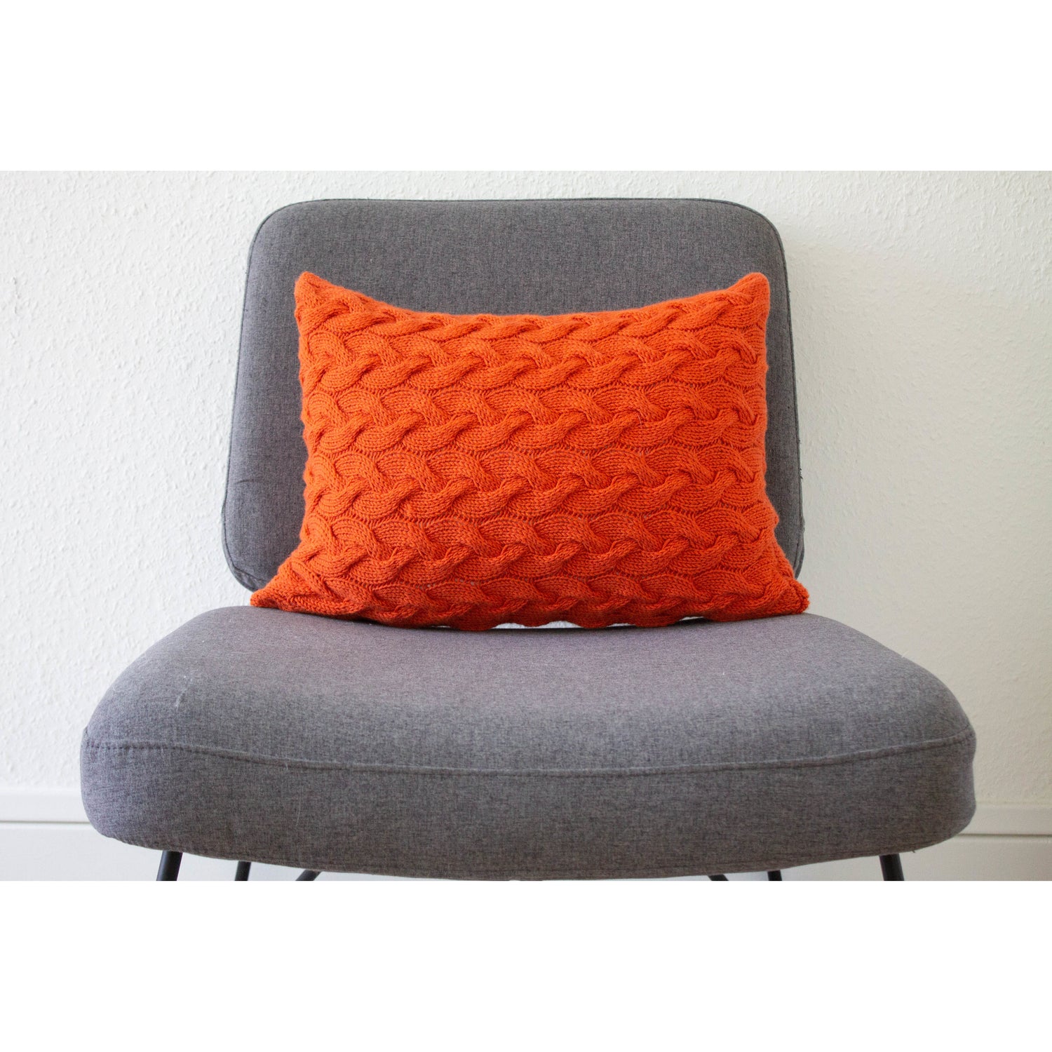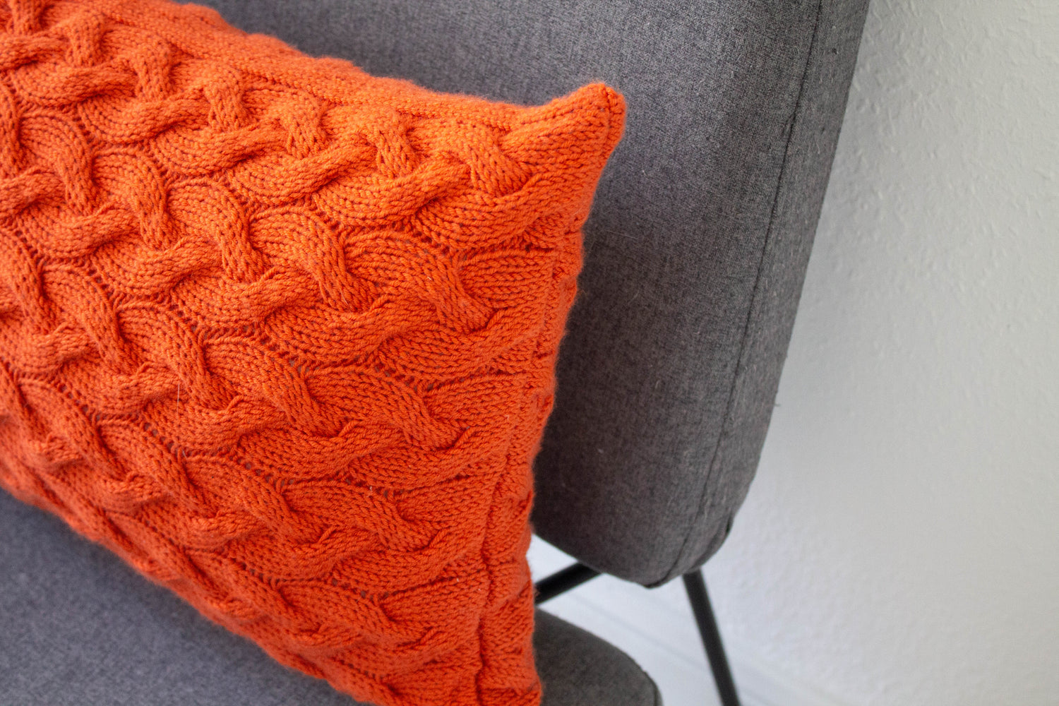 Contemporary Lattice Knit Cushion Hand Knit in Tangerine
