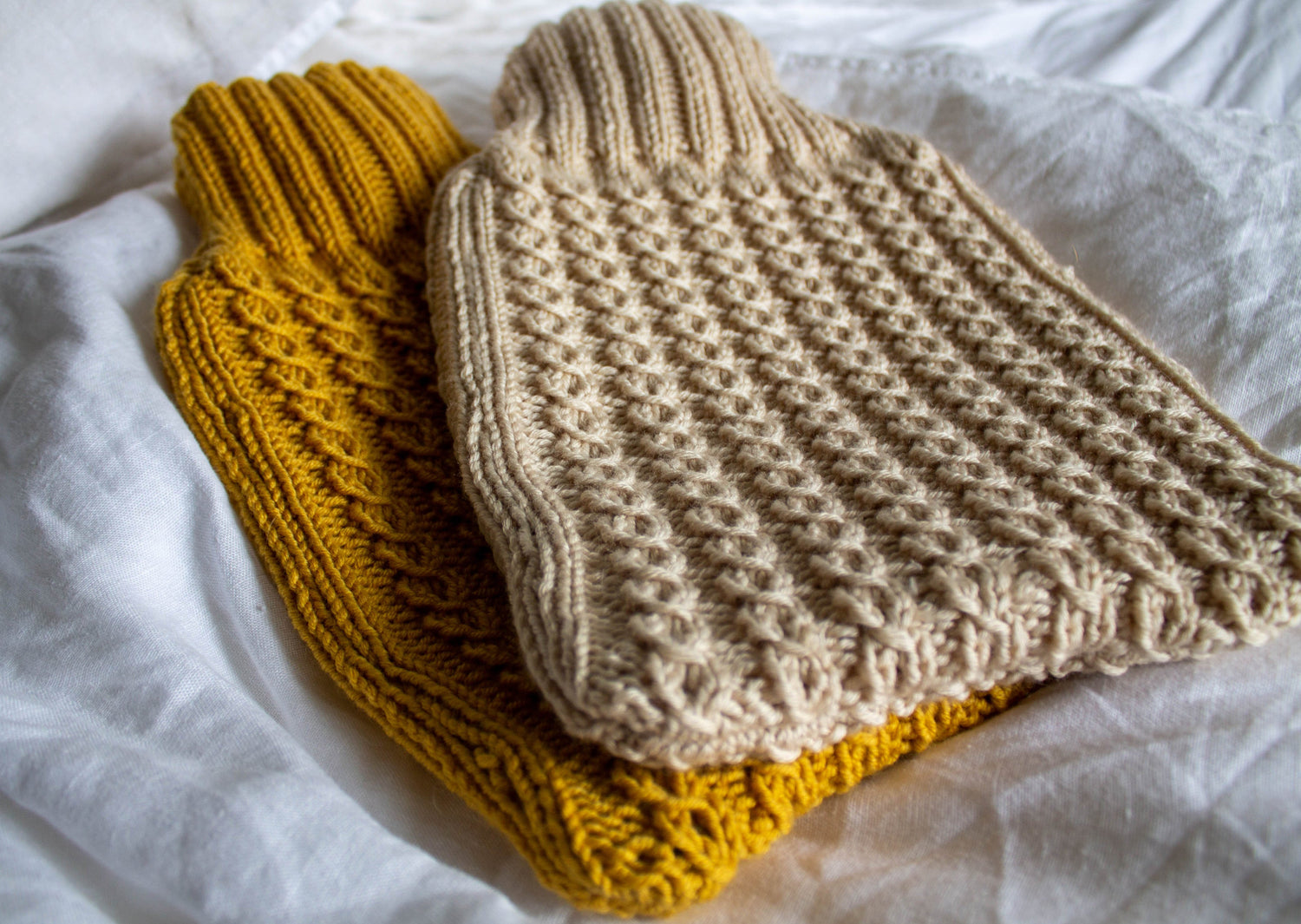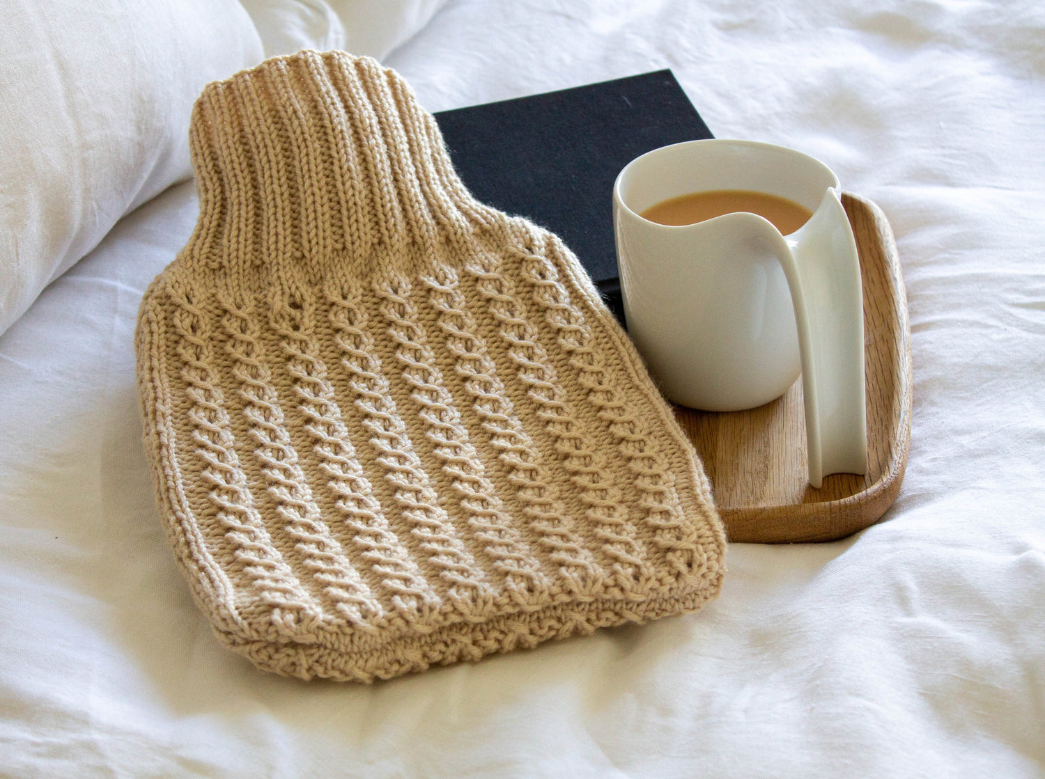 Our hand knit hot water bottle is knitted in a cashmere and wool blend yarn - soft and sumptuous - whilst the classic cable stitch creates subtle texture.