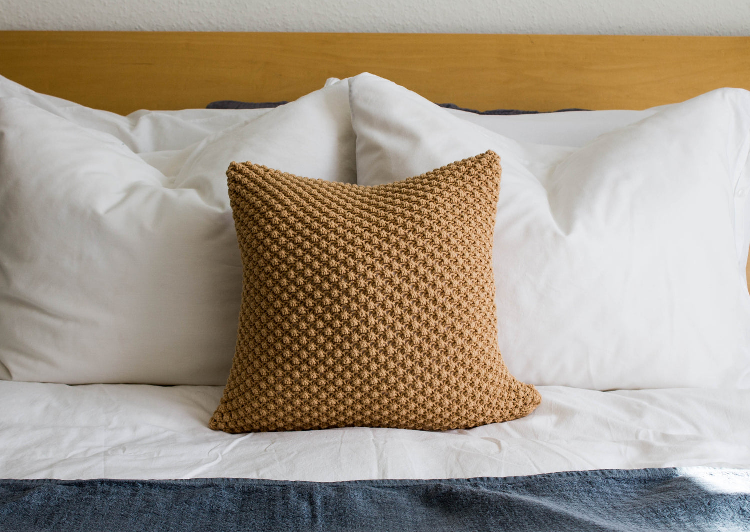 Our pebble stitch cushions are hand-knitted in 100% recycled cotton - soft and durable - whilst the the intricate stitch pattern creates dimension, yet subtle texture.